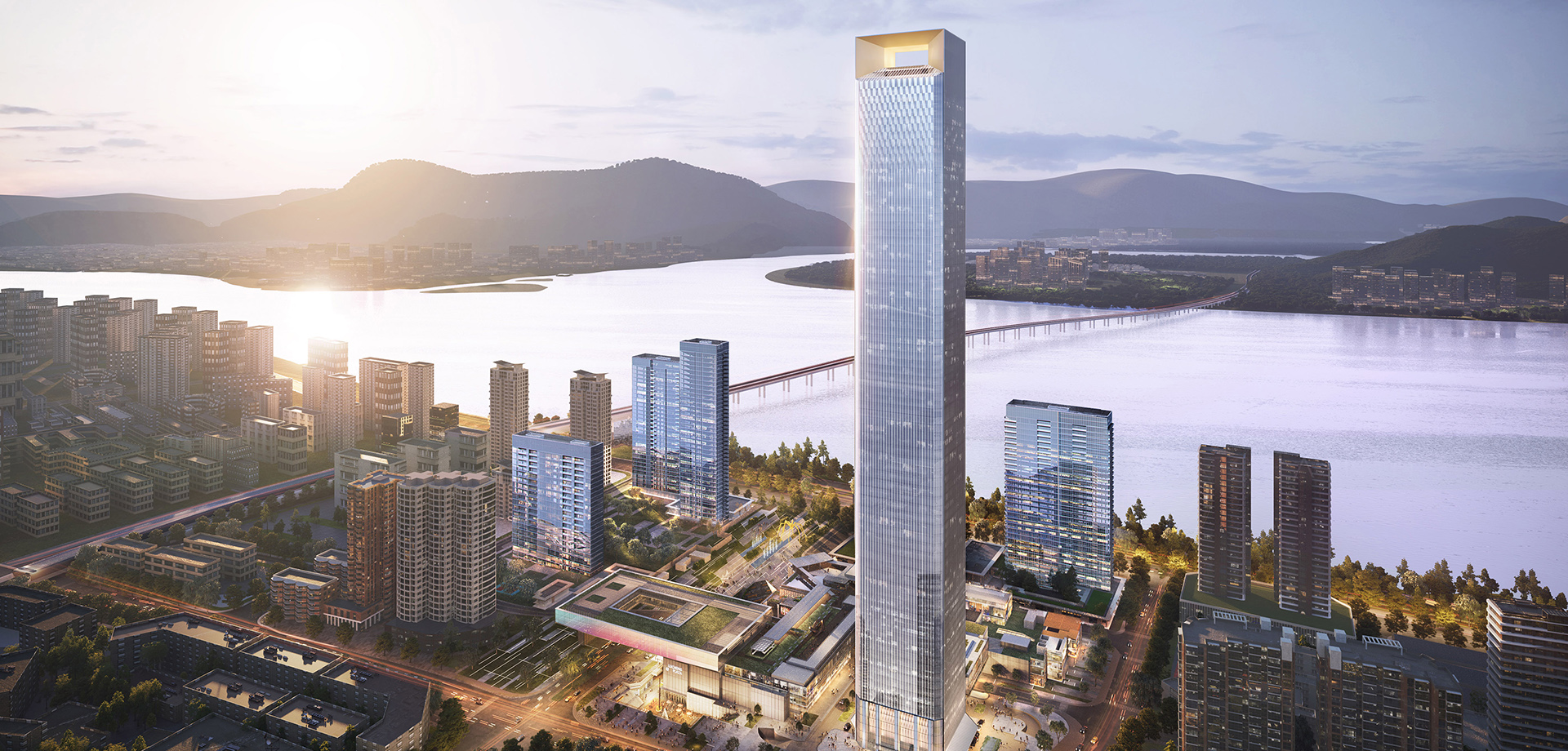 建筑高度:380m(79層) 幕墻面積:13.9萬m2 項目設計:SOM建筑事務所/浙江綠城建筑設計有限公司 幕墻類型:單元式玻璃幕墻、編制式單元幕墻等