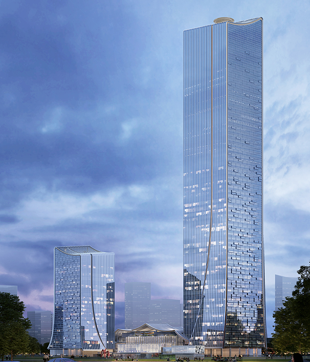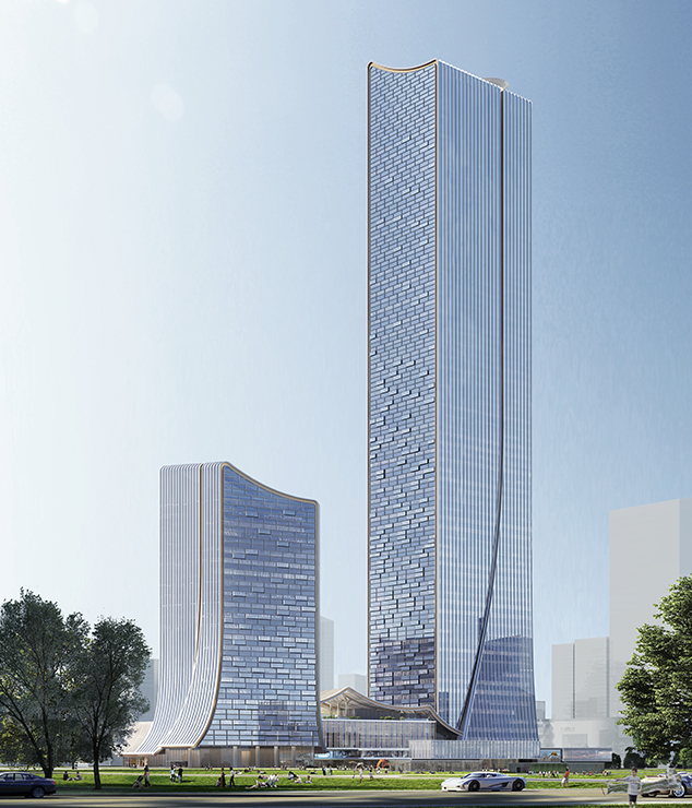 建筑高度:326.1m(65層) 幕墻面積:7.1萬m2 項(xiàng)目設(shè)計(jì):Aedas建筑設(shè)計(jì)事務(wù)所 幕墻類型:單元式玻璃幕墻等