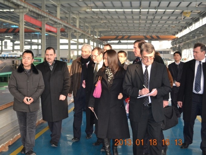 方大新材料(江西)有限公司總經理唐昱對考察團的到來表示熱烈歡迎,并陪同考察團到生產現場等進行參觀考察。唐昱總經理向來賓介紹了公司的基本情況和行業發展現狀。羅蘭·孟伊一行對方大鋁板在技術水平、產品質量、品牌影響和市場競爭力等方面的綜合優勢表示贊賞。雙方還就共同感興趣的話題進行了探討。