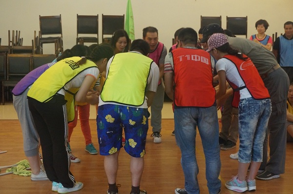集合、報數、整隊、分組,一行人被分為6組開始不同主題的拓展活動,學員們分別進行了“國王與天使”、“目標市場”、“七巧板”、“團隊動力圈”、“挑戰(zhàn)99”、“合力致勝”和“畢業(yè)墻”等拓展科目。