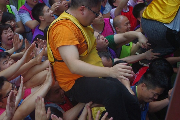 “團隊動力圈”和“畢業(yè)墻”科目帶給我們更多的是震撼、擔當和感動。“一個都不能少”這是學員在分享中提到的,團隊離不開個人,個人更需要團隊強大的力量支持。“讓我來撐起你”這是一種責任和承諾,“謝謝你們讓我當墩子”這是互相的信任和支持,“我的后背都交給你,來吧”、“你去休息換我來”、“注意安全”、“保護保護”……感動我們的是一句句承諾和信任,是一雙雙保持45度向上姿勢的手掌,是一個個泛紅的眼圈,我們奉獻于團隊,我為我的團隊感到驕傲和自豪。