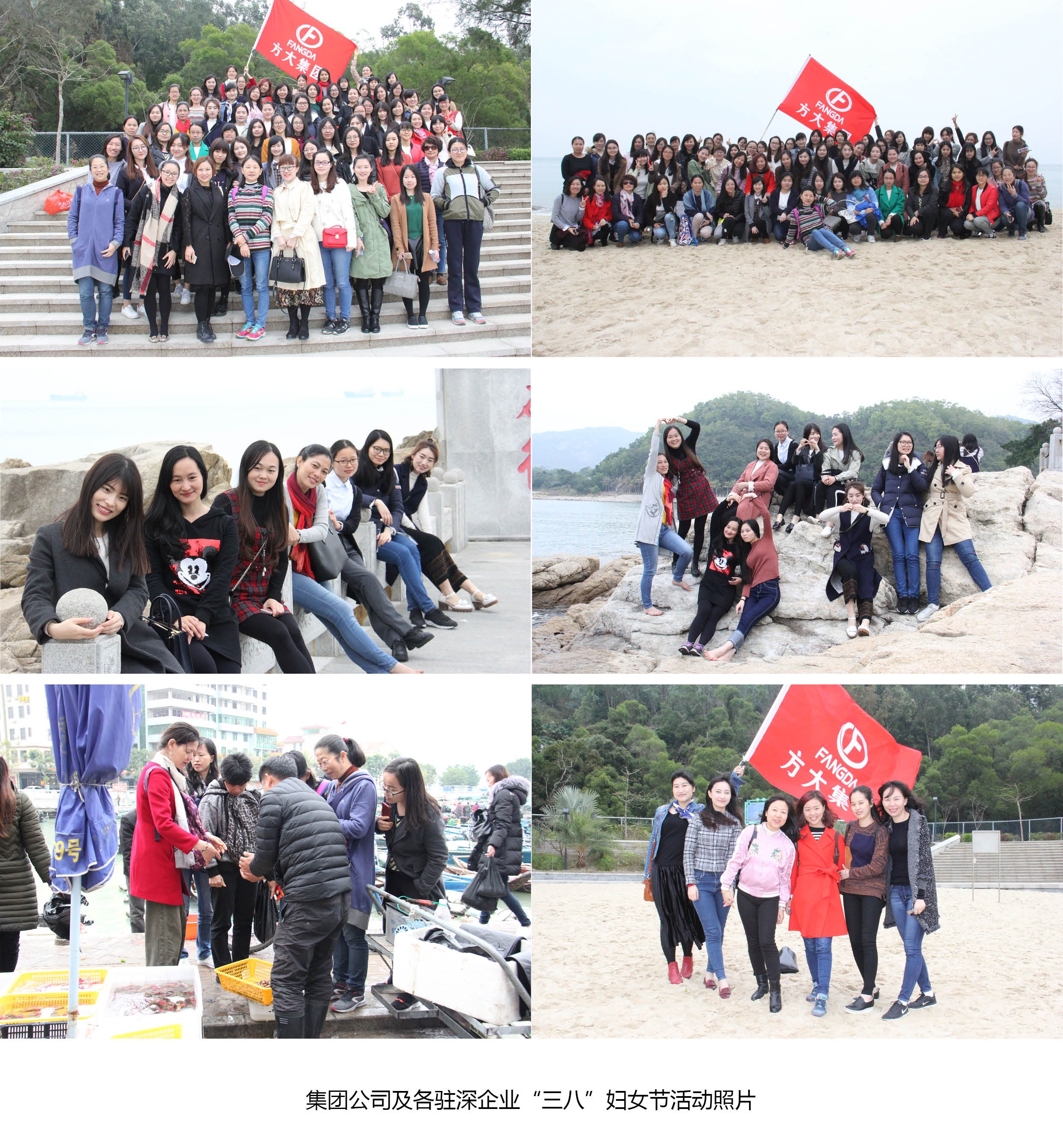 在深圳,集團(tuán)公司及各駐深企業(yè)組織全體女員工前往深圳東部海岸進(jìn)行休閑觀光及聚餐活動(dòng)。下午1點(diǎn)30分,駐深企業(yè)女員工一行80余人在深圳方大大廈集結(jié)完畢,隨即分乘兩輛大巴前往深圳東部官湖角海灘。約90分鐘車程后,觀光團(tuán)達(dá)到目的地。在這個(gè)屬于女性同胞的節(jié)日里,天公也別樣作美,上午淅瀝瀝的大雨,一到下午就停了,地面積水也逐漸干了。美麗的官湖角海灘上,暖風(fēng)輕拂,碧海一望無際。美麗的方大女員工們?cè)诤┥虾嫌傲裟睿Y(jié)伴游玩。她們或放眼眺望欣賞海景,或高舉手機(jī)專注地自拍,或并肩攜手踏浪,其樂融融。離開官湖角海灘后,方大女員工們一道專程前往惠陽澳頭村聚餐,一品滋美的海鮮大餐。
