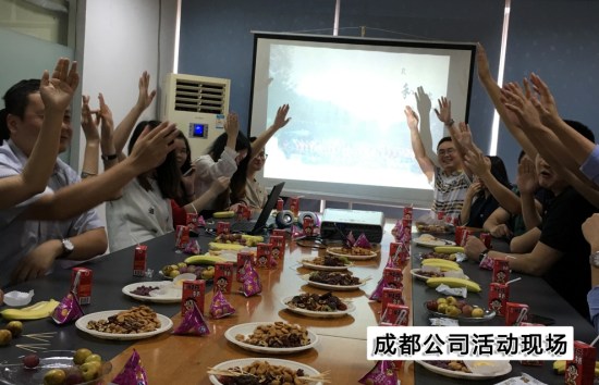 在方大集團成都公司,9月30日下午舉辦了一次輕松、熱鬧的中秋茶話會。團聚和暢聊是這次活動的主要內容,活動現場歡笑聲、祝福聲不絕于耳,精心準備的水果點心、悠揚的音樂和中秋主題背景共同營造了濃濃的中秋佳節氛圍。在這花好月圓的時刻,雖然員工們遠離家鄉,但方大人聚在一起,就是相親相愛的一家人。