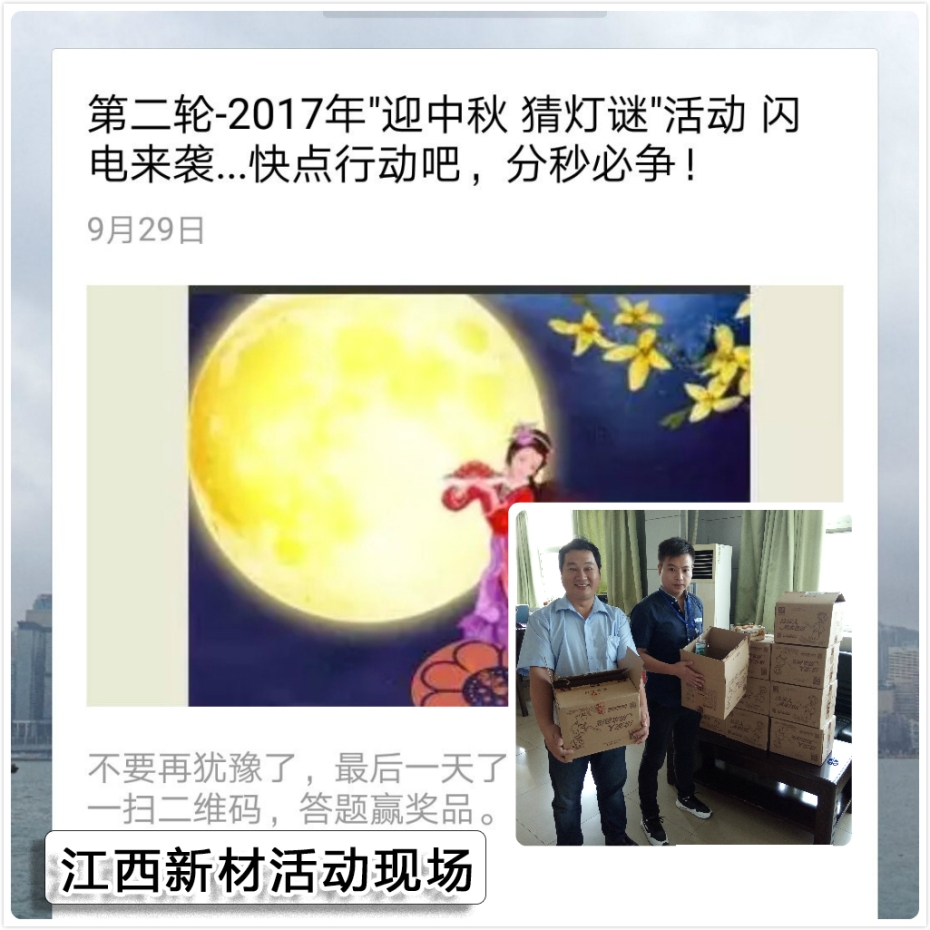 在方大集團江西公司,9月28日、29日舉行了一次別開生面的“迎中秋猜燈謎”線上活動。為了讓公司員工感受到節日濃厚的氣氛,同時又能搭建企業文化交流的橋梁,此次活動由傳統猜燈謎改為微信猜燈謎方式進行。員工們通過關注公司微信公眾號后,即可在線參與解答猜燈謎的活動。通過這次“迎中秋猜燈謎”活動,極大地激發了員工們關注公司微信公眾平臺的激情,也為員工們留下了一段難忘的節日回憶。