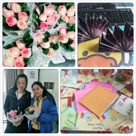 在東莞,因生產較忙,女員工們放棄休息,自愿在崗工作。東莞公司為女員工們準備的精致的禮物,晚上以一頓豐盛的晚餐慶祝此次“女神節”活動。