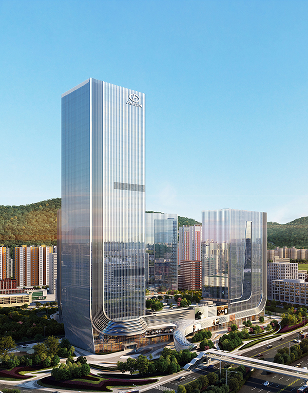 方大廣場位于深圳市南山區華僑城內,由四棟110-200米高度不等的塔樓和其底部裙樓組成,總建筑面積達33萬㎡,一期項目幕墻面積約7萬㎡,幕墻類型主要是新型單元式玻璃幕墻、新型單元式格柵幕墻。建筑外立面采用方大制造的LOW-E中空雙銀玻璃幕墻,防輻射、高效隔熱。鋁型材裝飾條在安裝過程中選配合理的裝配方法及對裝配進行優化設計,美觀和安全兼具,并有效阻擋陽光直射、降低空調能源消耗。裙樓異型及弧形部分較多,施工過程的每道工序必須嚴格把控,考量每一個細節,特別是在異型部位測量定位時,軸線尺寸要嚴格控制。裙樓復雜如漩渦般的造型將四棟塔樓融為一體,不僅氣勢磅礴,律動的曲線也賦予建筑流動性,讓人、建筑、自然環境融為一體。