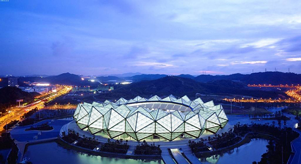 2011年10月,舉世矚目的第26屆世界大學生夏季運動會在深圳成功舉辦。深圳大運中心主體育館工程的外圍護結(jié)構(gòu)工程造型復雜,應用了多種新型節(jié)能材料,防水性能要求高,設計及施工難度堪比北京奧運會的鳥巢。別致新穎的設計讓所有人眼前一亮,但想讓它在緊張的工期內(nèi)完工并達到預期效果,卻并非是一件容易的事。業(yè)主方聯(lián)系了多家國外幕墻公司,但對方均未接手。在省、市政府有關領導的帶領下,業(yè)主方找到了方大,通過多方研究,組委會最終決定把深圳大運中心和深圳灣體育中心兩個項目交給方大,當時這兩個項目在全世界都是難度非常高的。