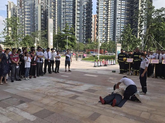 為檢驗深圳方大城安全預警系統有效性,強化業主及物業相關人員安全意識,提升應急避險、自我救護能力,6月27日下午,由深圳市南山區桃源街道辦事處主辦、方大城物業服務中心協辦的“防風險、除隱患、遏事故”應急救援綜合演練在方大城舉行。桃源街道辦主任李海濱,桃源派出所副所長林偉文,方大集團副總裁、置業公司董事長林克檳等參加演練。