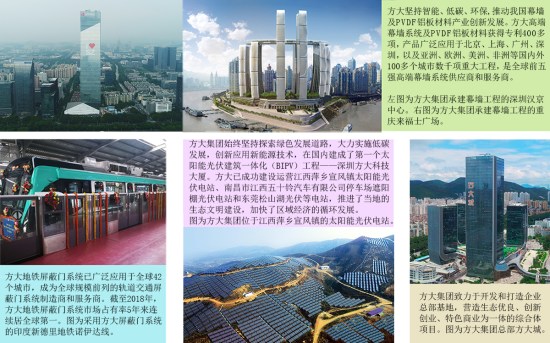 24年來(lái),方大堅(jiān)持智能、低碳、環(huán)保,推動(dòng)我國(guó)幕墻及PVDF鋁板材料產(chǎn)業(yè)創(chuàng)新發(fā)展。方大高端幕墻系統(tǒng)及PVDF鋁板材料獲得專(zhuān)利400多項(xiàng),產(chǎn)品廣泛應(yīng)用于北京、上海、廣州、深圳,以及亞洲、歐洲、美洲、非洲等國(guó)內(nèi)外100多個(gè)城市數(shù)千項(xiàng)重大工程,包括北京外交部大樓、上海花旗銀行大廈、廣州凱達(dá)爾樞紐國(guó)際廣場(chǎng)、深圳寶安國(guó)際機(jī)場(chǎng)T3航站樓、深圳漢京中心、重慶來(lái)福士廣場(chǎng)、南昌萬(wàn)達(dá)茂、武漢漢秀劇場(chǎng)、澳門(mén)科學(xué)館、澳大利亞萬(wàn)豪酒店、英國(guó)倫敦摩天大廈、安哥拉羅安達(dá)新國(guó)際機(jī)場(chǎng)航站樓、沙特諾拉公主大學(xué)城等全球標(biāo)志性工程或重點(diǎn)建設(shè)項(xiàng)目,屢獲“魯班獎(jiǎng)(國(guó)家優(yōu)質(zhì)工程)”、“詹天佑土木工程獎(jiǎng)”等行業(yè)大獎(jiǎng),創(chuàng)造了我國(guó)建筑幕墻行業(yè)多項(xiàng)第一,是全球前五強(qiáng)高端幕墻系統(tǒng)供應(yīng)商和服務(wù)商。