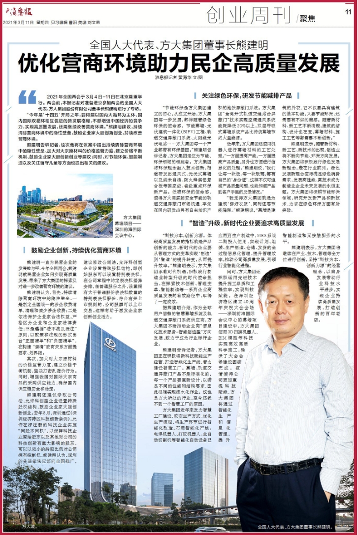 2021年全國(guó)兩會(huì)于3月4日-11日在北京隆重舉行。兩會(huì)前,本報(bào)記者對(duì)即將進(jìn)京參加兩會(huì)的全國(guó)人大代表、方大集團(tuán)股份有限公司董事長(zhǎng)熊建明進(jìn)行了專訪。