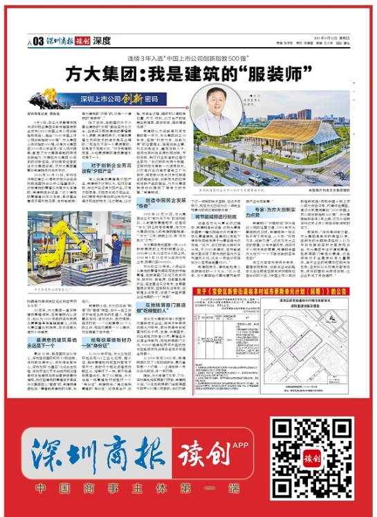 8月9日,浙江大學(xué)管理學(xué)院與深圳報業(yè)集團深新傳播智庫聯(lián)合發(fā)布《2021中國上市公司創(chuàng)新指數(shù)報告》,推出“2020中國上市公司創(chuàng)新指數(shù)500強”。方大集團入選該指數(shù)500強,這是方大集團自2019年以來連續(xù)3年入選該榜單,彰顯了方大集團卓越的持續(xù)創(chuàng)新能力。為揭秘方大集團30年來的創(chuàng)新密碼,深圳商報記者前往方大集團總部,對方大集團董事長熊建明進行獨家專訪。